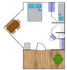 In contemporary architecture, lightly colored, the 17 chalets offer the warmth and comfort of wood with equipment of top range comfort. Facing southwest, they have a bay window entrance allowing a good brightness of the inside rooms and direct access to the landscaped terrace.
